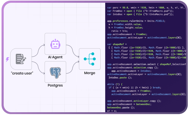 - Build simple automations with the visual editor. Just drag and drop what you need. When things get tricky and you need more control, open the JavaScript editor and write your own code. You can mix both approaches in the same workflow. Use the quick visual tools for basic tasks, and add custom code for the complex parts. Build however works best for you.